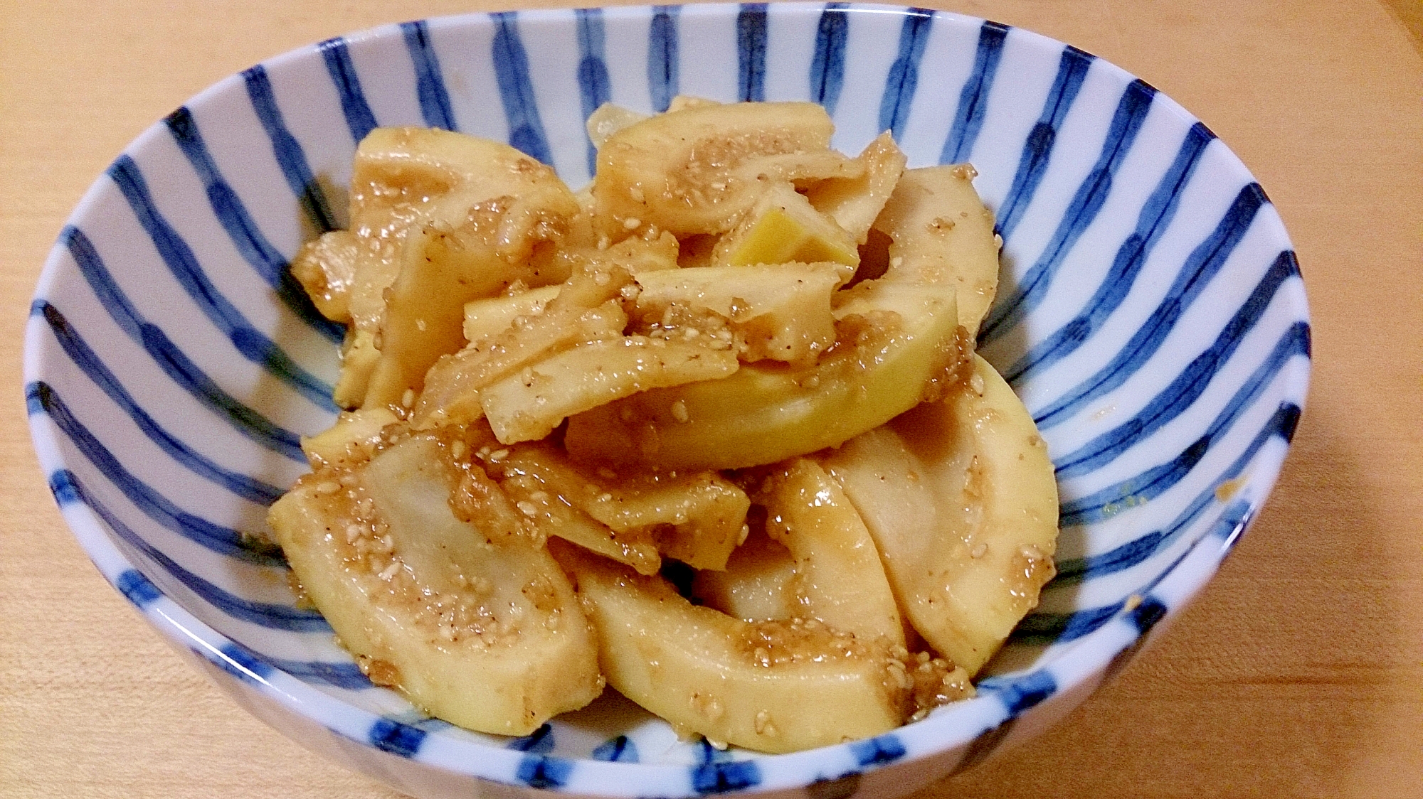 タケノコのゴマ味噌煮 フライパンで簡単煮物 レシピ 作り方 By ぼーずの母ちゃん 楽天レシピ
